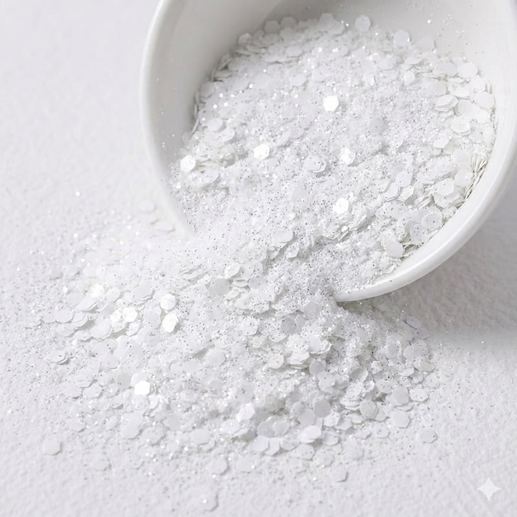 Cette petite paire en paillettes blanches capte la lumière avec subtilité et élégance.